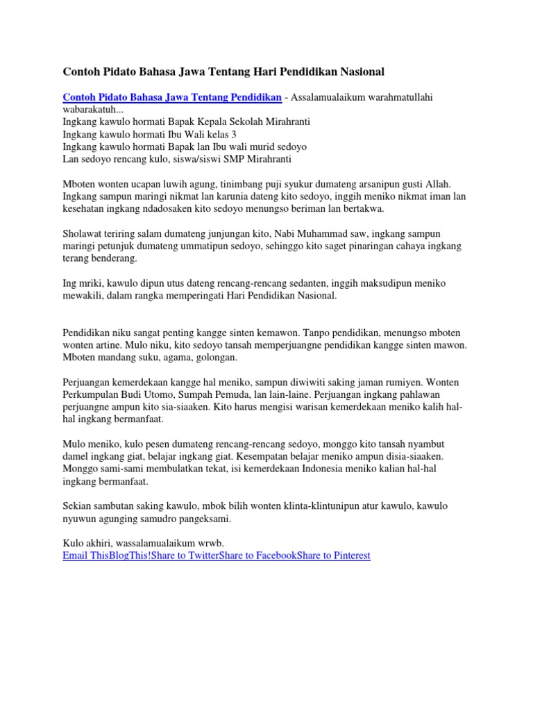 Pidato menteri pendidikan dan kebudayaan pada upacara hari pendidikan nasional 2 mei 2017 assalamu'alaikum warahmatuiahi wabarakatuh, salam sejahtera dan bahagia bagi kita semua, pada hari yang penuh berkah dan nikmat ini, 2 mei 2017, kita kembali memperingati hari. Sistem pendidikan dimana saja, di seluruh dunia, terkena dampak langsung. Berkaitan tentang hari pendidikan nasional atau (pendiknas), dibawah ini adalah contoh biantara bahasa sunda tentang peringatan hari pendidikan yang mungkin saja dapat menjadi bahan referensi jika kebetulan kamu sedang mendapati tugas dalam membuat sebuah biantara disekolah. Hari pendidikan nasional, disingkat hardiknas, adalah hari nasional yang bukan hari libur yang ditetapkan oleh pemerintah indonesia untuk memperingati kelahiran ki hadjar dewantara, tokoh pelopor pendidikan di indonesia dan pendiri lembaga pendidikan taman siswa. Tanpa pendidikan, manusia tidak akan berkembang. Sistem pendidikan dimana saja, di seluruh dunia, terkena dampak langsung. Hari pendidikan nasional tanggal 2 mei 2009 mempunyai arti penting dalam kancah pendidikan nasional indonesia. Karena saya dulu juga merasakan hal tersebut ketika masih. Ya, selain menyukseskan program wajib belajar 12 tahun, pidato pendidikan juga dapat menyampaikan tentang hal lain yang tentu saja. Pertambahan anak umur sekolah yang cepat dan pertambahan lulusan tiap jenjang pendidikan yang besar, tapi tidak diikuti penambahan prasarana. Ini diulas oleh menteri pendidikan dan kebudayaan nadiem makarim dalam pidatonya. Momen hari pendidikan nasional sangatlah penting untuk diperingati. Untuk memperingati hari pendidikan nasional ini biasanya para pelajar atau siswa mengadakan apel bersama untuk mengenang jasa para pahlawan yang sangat berjasa dalam dunia pendidikan, setelah acara tersebut selesai biasanya ada beberapa sekolah atau instansi yang mengadakan lomba pidato.